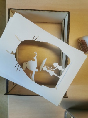 Le principe est simple, il s'agit d'une boite carrée dans laquelle on insère des feuilles prédécoupée. Pour finir on l'éclaire avec une source de lumière et la magie opère, la source de lumière mettant en relief le décors choisi.