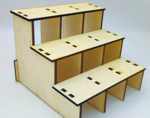 | − | Idée : | + | Idée : Présentoir en forme d'escalier pour des petites figurines (Amiibo) avec quelques personnalisations sur les cotés de types dessin (tiré de jeu vidéo). |