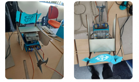 Une fois le robot monté, nous avons commencé la maquette pour visualiser si notre idée de départ passe ou non. L’idée était plutôt bonne alors nous sommes partis là dessus. Nous voulions rajouter de la décoration alors nous avons rajouté un drapeau porté par des longs piques, sur lequel nous ferions un logo et des petits piques qui font aussi office de défense dont les cormes des caques des vikings nous ont inspiré.