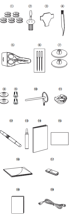 • 1 fil de coton blanc à monter sur la canette (numéro 1 sur la liste)