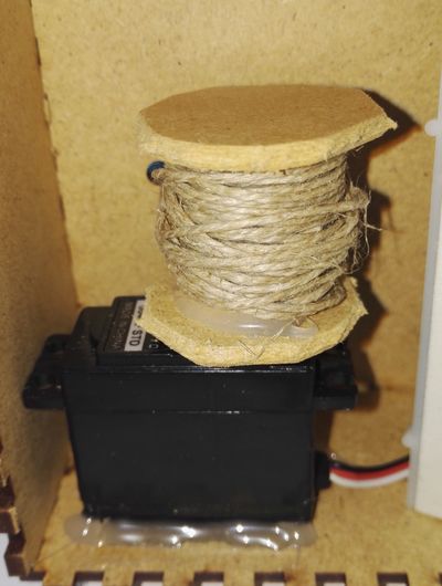- Après cette partie terminée, il ne manque plus qu'a fixer le cylindre sur le servomoteur de droite en emboitant la roue dentée du servo dans le disque inférieur du cylindre.