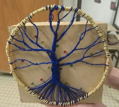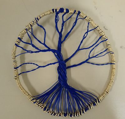 Puis enrouler tous les câbles sur un côté de l'arc de cercle, enrouler ensuite vos fils de manière a faire un tronc, puis séparé les au fur et à mesure pour faire des branches de moins en moins épaisses et enroulé de nouveaux les câbles sur l'arc de cercle.