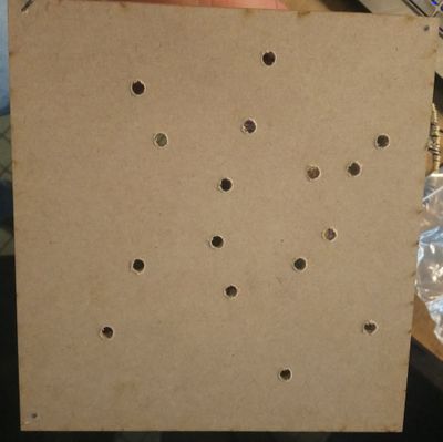 Débrancher les leds et mettez un câble mâle-femelle pour les relier à la plaque, avant de rebrancher les leds, coller les dans les trou préalablement fait. Puis rebrancher les leds.