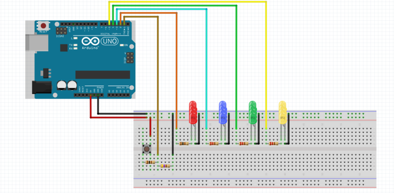 Serial.begin(9600); //Indication des entrées pinMode(bp, INPUT); pinMode(grpLed_1, OUTPUT); pinMode(grpLed_2, OUTPUT); pinMode(grpLed_3, OUTPUT); pinMode(grpLed_4, OUTPUT);}