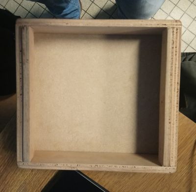 Dimensionner la planche supérieur de votre boîte en fonction du diamètre de votre arbre, il doit être poser dessus sans problème. Puis faite un entourage pour pouvoir mettre la carte arduino et le câblage dans votre boîte. Une fois couper fixez les côtés de votre boîte.
