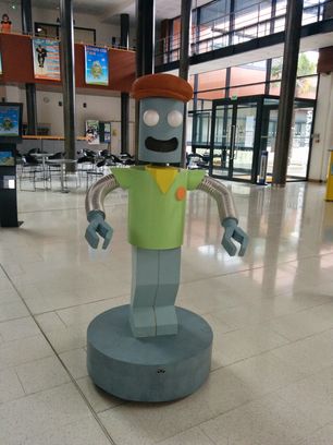 L'aspect extérieur du robot a été fait à partir du dessin de Victor, la mascotte de l'espace Victor Hugo, modélisé par Jean-Christophe Balan, illustrateur et réalisé par Stéphane, menuisier de la Ville.