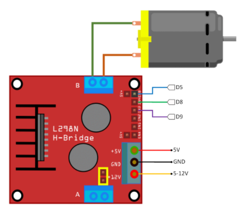 Code et pont en H : https://arduino.blaisepascal.fr/pont-en-h-l298n/