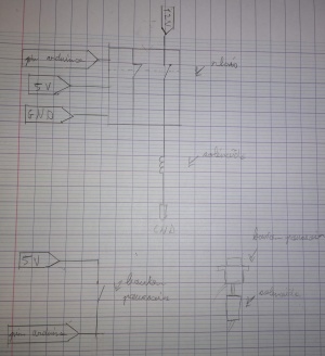 Il faut d'un côté brancher le relais à la masse de l'arduino, 5V de l'arduino et sur le pin de l'arduino qui servira à commander le relais.