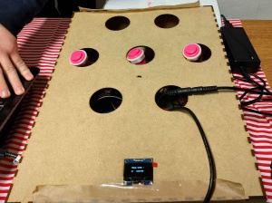 Ici il n'y a que 3 taupes mais vous pouvez en rajouter a votre guise et changer le texte sur l'ecran.