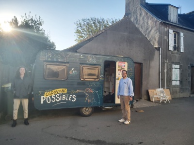Une cabine téléphonique qui permet aux gens d'écouter, grâce à un vieux téléphone, des témoignages, besoins, envies des habitants en lien avec leur quotidien et les transitions, mais aussi d'à leur tour enregistrer leur message. Cela permet de garder une trace des échanges que les membres de l'asso ont eu avec les habitant.e.s de Brest. La parole est donc valorisée. Ce dispositif permet d'éviter le frein de l'écriture et d'amener de façon ludique les gens à se confier sur leurs ressentis sur la ville, sur leur quartier.