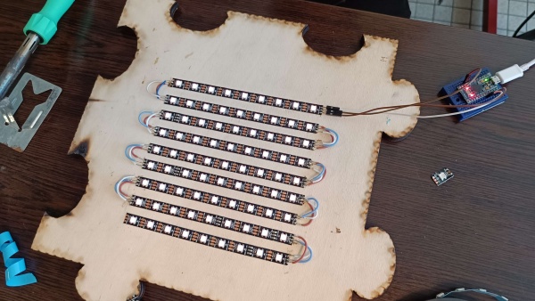 Nous créons un labyrinthe de LED RGB. Le but du joueur est de trouver le chemin vers la sortie en déplaçant son personnage en tapotant la table du côté vers lequel il veut se diriger, tapotement détecté par des capteurs de vibrations. L'objectif est que les murs du labyrinthe se révèlent quand le joueur se heurte à l'un d'entre eux.