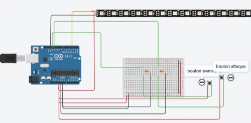 La première étape du projet a été de trouver une idée de jeu à réaliser avec le matériel à notre disposition. Après plusieurs idée abandonnée rapidement, nous nous sommes mis d'accord pour faire un jeu de poursuite et de tir avec notre bande de LED.