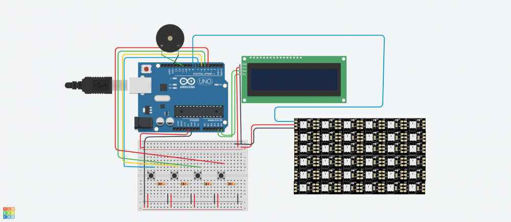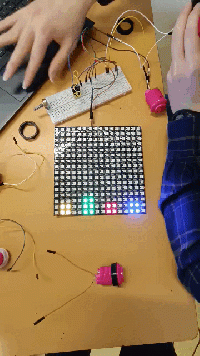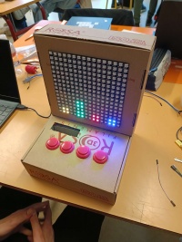 Pour ce faire des carrés lumineux descendront sur un écran LED 16x16 et indiqueront au joueur à quels moments appuyer sur les boutons correspondant