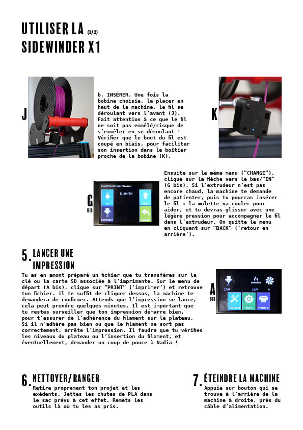 Ces fiches ont pour but d'être imprimées pour être accessibles près des machines qu'elles accompagnent. N'hésitez pas à les corriger, rendre plus simples ou plus funs (les dossiers d'assemblage incluant les images sont téléchargeables ici aussi).