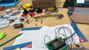 Ce hackathon a pour objectif d'adapter le jeu Simon (mémoire des couleurs/sons) spécifiquement pour la fête de Noël de l'école.