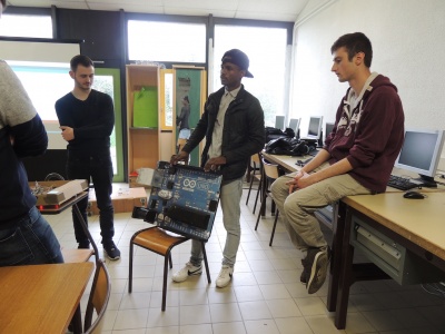 Points Négatifs: Concentration de l'ensemble des ateliers dans une même salle n'est pas évident par rapport aux bruits produit par l'ensemble des stands (robots, makey, arduino...). Attention, -6 ans ce n'est pas forcement évident pour la partie explicative sur le fonctionnement de la programmation.
