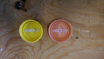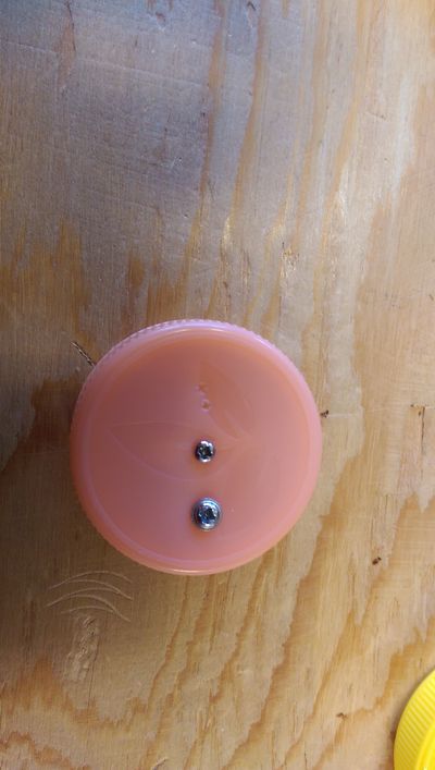 Pour faire les roues, nous avons récupéré des bouchons de bouteille de tailles identiques (c’est important !) que l’on a fixées sur les servomoteurs grâce aux petites vis fournies. Attention à bien centrer la fixation au milieu des roues et à ne pas trop serrer pour éviter toute déformation. Pas besoin de pré-percer, le plastique est assez fin pour être vissé directement.