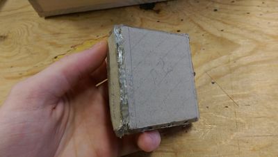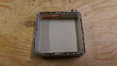 Découpez une planche de bois ou de carton de façon à obtenir un compartiment à piles de dimensions 6*6cm environ et de hauteur 1,5cm, comme ceci :