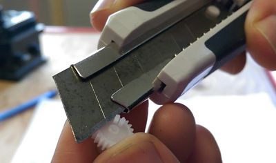 Un des engrenage possède des picots qui bloquent sa rotation complète. Il faut donc couper ces picots.