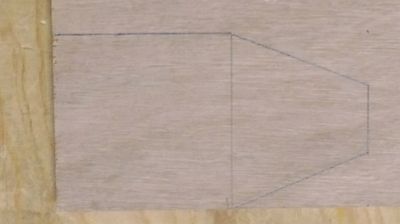 La partie carrée à gauche représentant le bloc de piles qui sera situé en-dessous, et la pointe correspond à la partie qui sera par la suite trouée pour y insérer le feutre.