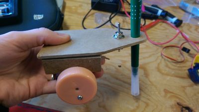 Une fois le bloc d’alimentation réalisé, il faut fabriquer une petite plaque qui servira à maintenir le crayon/feutre. Nous l’avons fait ainsi :