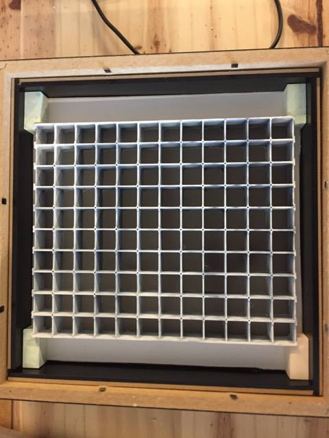 Ensuite,dans le cadre IKEA fourni, un carton blanc en forme de carré est fourni. Nous l'avons utilisé pour cacher les espaces vides ainsi que les fils en y redécoupant la forme de la grille .