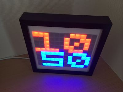 Notre objectif ici est de réaliser une grille de 12x10 composée de gros "pixels", pouvant afficher n'importe quelle couleur. Cette même grille serait contrôlable par smartphone, et s'appelle donc un cadre à LED. Le cadre pourras être capable d'afficher l'heure, des couleurs, des messages personnalisés et d'autre informations.