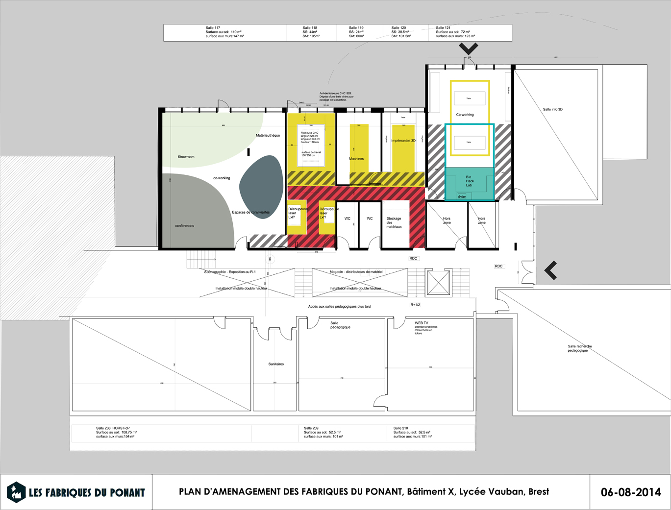 L'aménagement des Fabriques sera un projet d'autogénération, en constante évolution. Ainsi son projet d'aménagement devient un support pédagogique et collaboratif. Le lieu est sa propre vitrine. Voir intentions plus en détail dans le lien suivant: PROGRAMME_EESAB_/_FABRIQUES_DU_PONANT_à_BREST_-_2014-2015