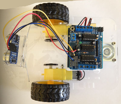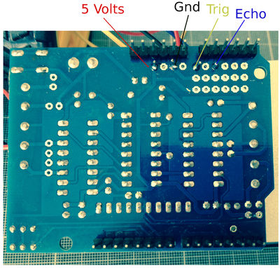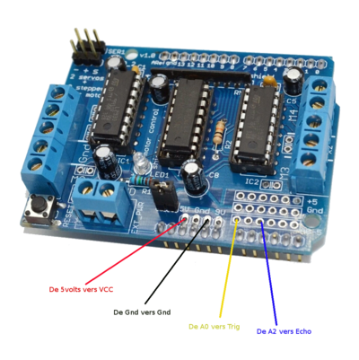 Le shield moteur s’encastre sur l’arduino. Les ports digitaux deviennent inaccessibles. Or nous avons besoin de deux de ses ports pour faire fonctionner le détecteur ultrasons HC-SR04.
