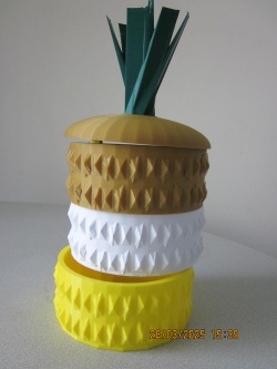 Objet de rangement décoratif en forme d’ananas découpé en 3 tranches (camouflent 3 étages de rangement dans son corps)