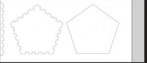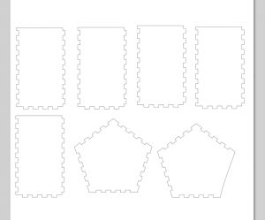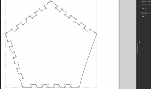 Dans un premier temps il faut ouvrir le logiciel "Inkscape" qui va permettre de modifier le plan et d'y ajouter des formes. Modifions la taille du document pour mettre 30 centimètre en hauteur et 30 centimètre en largeur. Il faut ensuite insérer le modèle (en format svg) puis le positionner de sorte à ce qu'il rentre dans la feuille. La photo ci-dessous montre le modèle de boite de base avec l'ajout d'une nouvelle pièce qui va servir de couvercle pour refermer la boite.