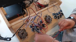 Mme Nadia en train de montrer le câblage des boutons de notre panel aux composants.