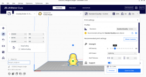 • Modifier la configuration de la pièce : a gauche les dimensions // à droite la configuration de l'impression