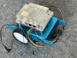 Montage du Mbot en suivant les instructions du manuel, nous avons ignoré la matrice LED et le suiveur de lignes en plus d'avoir retourné la roue avant de 180 degrés pour avoir plus d'espace en dessous pour la breadboard qui y sera placée. Nous avons fini les câblages et tester le robot en mode autonome avec l'application "Makeblock" dans le mode "Drive" dans le menu "Jouer".
