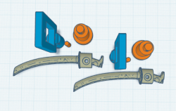 Agathe et Raman ont recherché des modèles d'armes et d'armures sur Thingyverse pour les incorporer à notre design. En même temps on a préparé un fichier 3D de test pour les supports des servomoteurs, à la même manière que précédemment sur Inkscape.