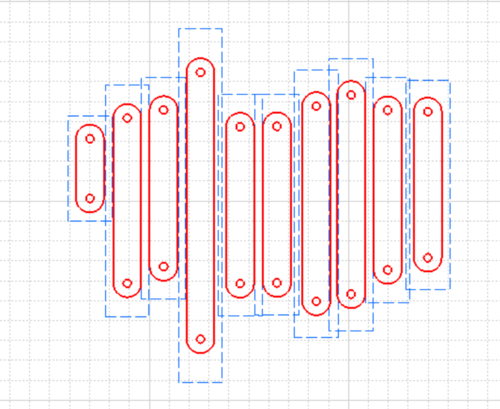 Maintenant, il faut assembler les pièces pour former la patte à partir du schéma présenté plus haut. Vous obtiendrez ceci, avec les pièces relié entre elle avec les même dimension que celle du schéma :
