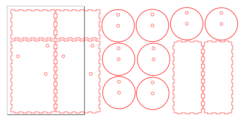 Par la suite, il suffit d'utiliser une découpeuse laser afin de découper sur une plaque en bois pour former les pièces de la pattes. Voici le résultat obtenu après la découpeuse laser :