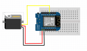 1 breadboard, 1 wemos, 3 cables males males, 1 servo moteur pas a pas (SG90°) Un petit robot a imprimer en stl (fichier a mettre ?? antony à l'aide )