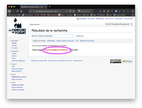 1 - vous vous créez un compte sur ce wiki (en haut à droite "créer un compte"). et vous vous assurez d'être connecté au wiki (loggé).