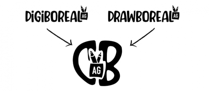 Réalisation : Pour le logo, j’ai utilisé Procreate, j’y ai inscrit le nom de mon compte « Drawboreal » j’ai testé plusieurs polices d’écriture et j’ai choisi la « Cherish Moment ». J’ai ensuite mis une petite illustration d’un pot à crayons au bout avec mes initiales AG (Aurore GICQUEL). Etant donné que j’ai un second compte de dessin avec seulement du digital qui a le nom de « Digiboreal », j’ai fait le choix de faire un logo qui rassemble ces deux comptes. J’ai donc opté pour les lettres D et B mises dos à dos avec au centre le pot à crayons et mes initiales.