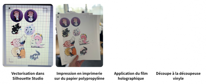 Matériel : Imprimante, papier stickers, découpeuse vinyle, film holographique